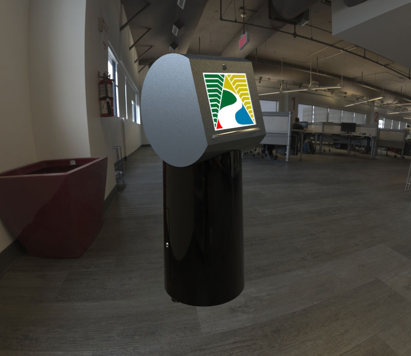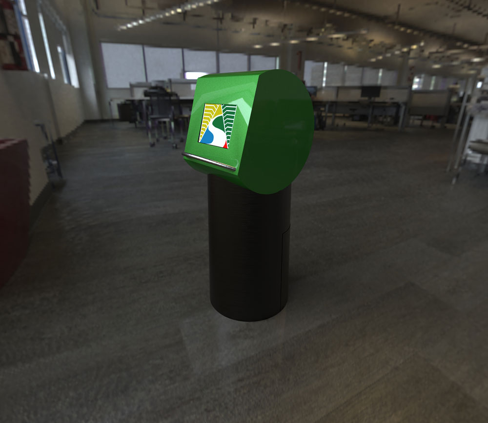 Cette borne possédait une tête rotative permettant de l’adapter à la taille des utilisateurs et aux personnes à mobilité réduite. Un guide audio pour les déficients visuels était inclus.